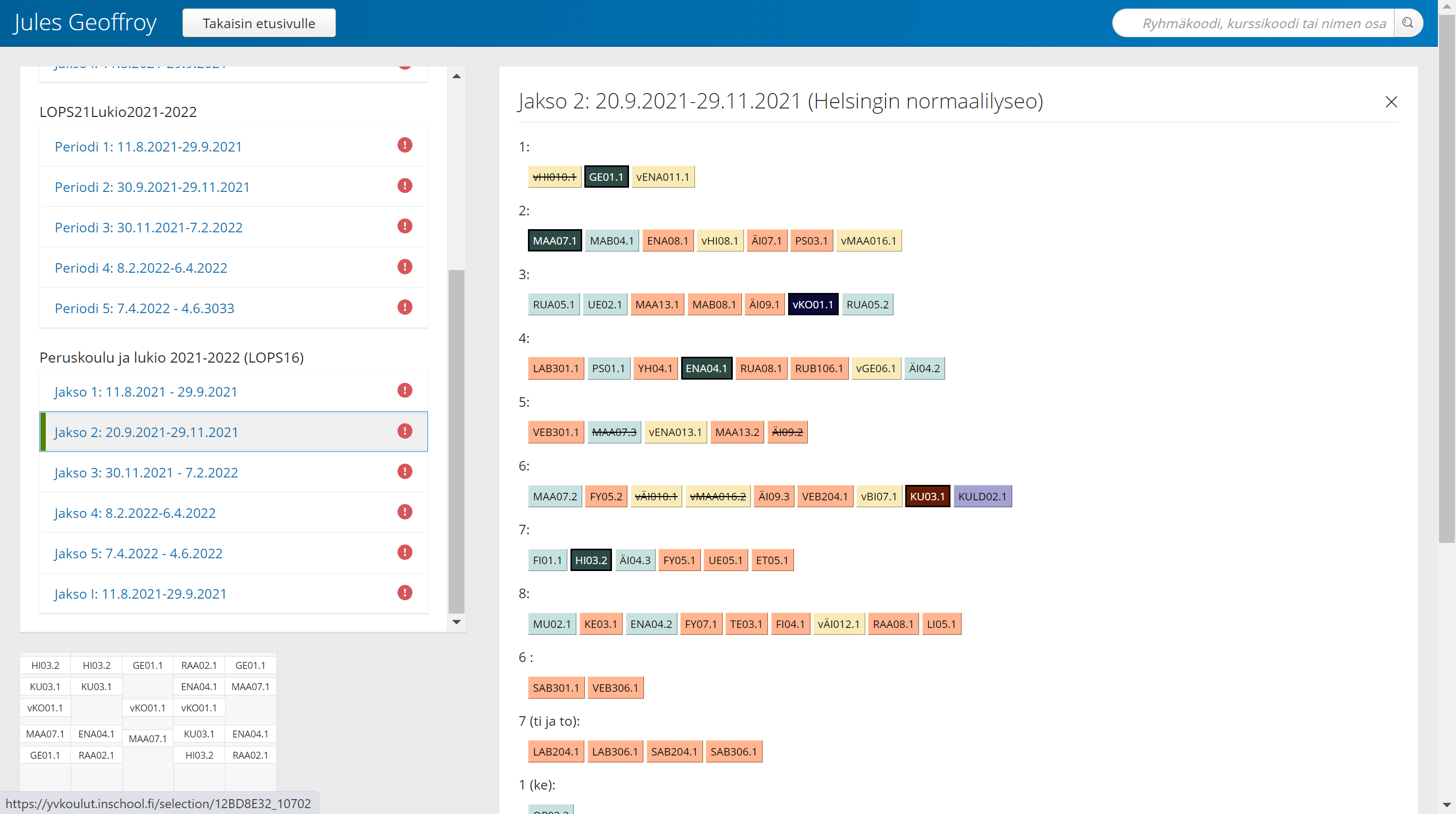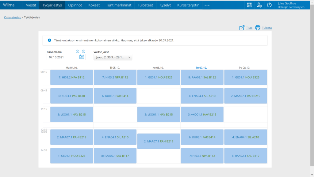Cette semaine était la fin du 1er « jakso » (période) et le début du second. Chaque Jakso se termine par une koeviikko, une semaine d’examen. J’ai donc fini mes premiers « modules », et je change maintenant complètement de cours, de matières, de groupes et de professeurs (ici les groupes ont encore moins de sens que en France). Il y a généralement 5 jakso dans une année.